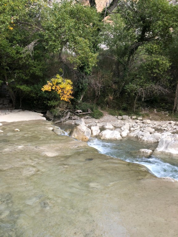 Nous vérifions qu’il n’y toujours pas de moyen de passer à pieds secs le gué. Plusieurs promeneurs, avec des chiens traversent allègrement dans le flot plutôt vif.