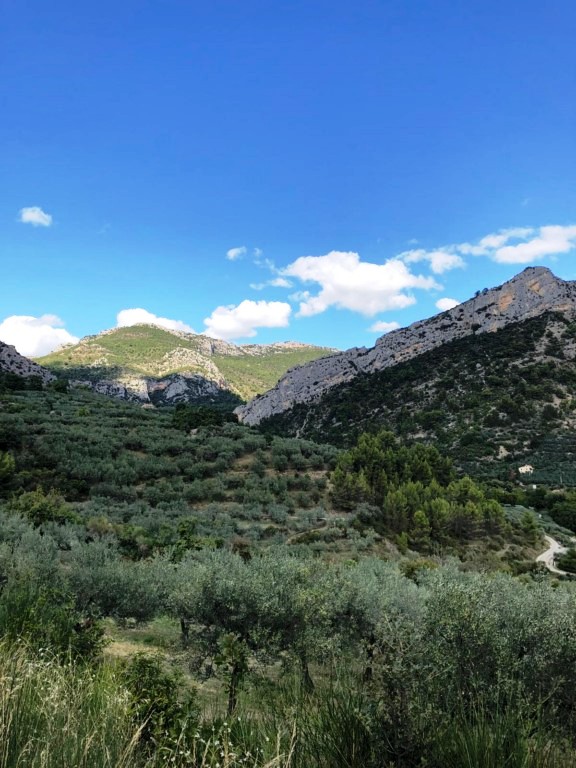 La route, est bordée d’oliviers, portant des fruits de très belle taille, probablement annonciateurs d’une belle récolte.