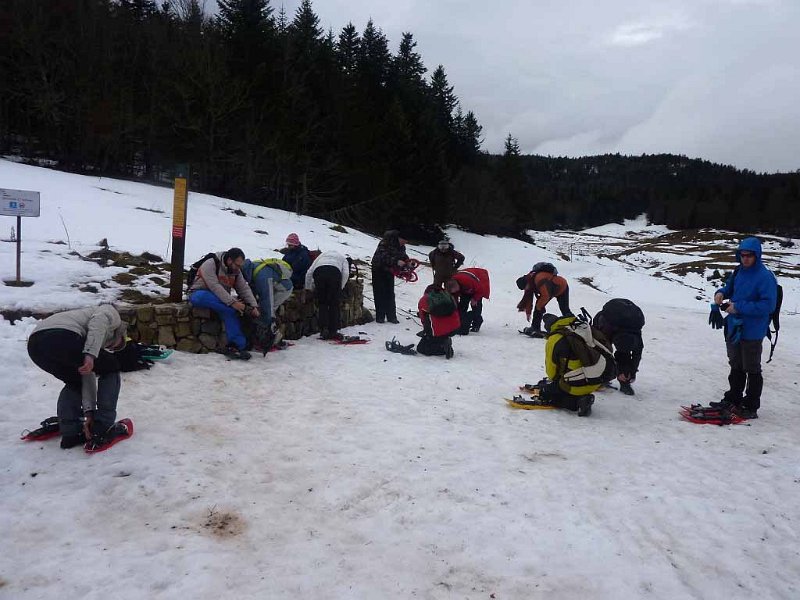 Le samedi après midi les accompagnateurs BF vont reconnaître les circuits qu'ils proposeront aux différents groupes, assez rude tâche car le plateau est complexe, la pluie incessante accompagnée de vent de Sud violent. Pour certains, le parcours reconnu sera fait sans raquettes aux pieds, car pas assez de neige ou ce qu'il en reste est agglutiné en congères. Les autres ont plus de chance car en sous-bois la poudreuse est de la soupe, mais quand même de la neige. Rentrés fourbus à la tombée de la nuit, on commencera à installer la décoration, sous forme de banderoles dans la salle des fêtes de Vassieux qui sera le point central des festivités du lendemain ; ensuite, la détente, dîner pris en commun à l'hôtel "Tétra lyre" puis une bonne nuit de sommeil pour attaquer le jour suivant.