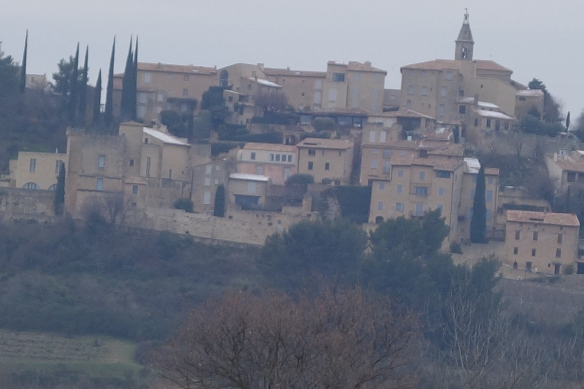 Un fait inhabituel est à mentionner : cette randonnée débute par une légère descente ! Puis le sentier connaît des hauts et des bas pour nous conduire en vue du village de Crillon-le-Brave que nous ne visiterons pas.
