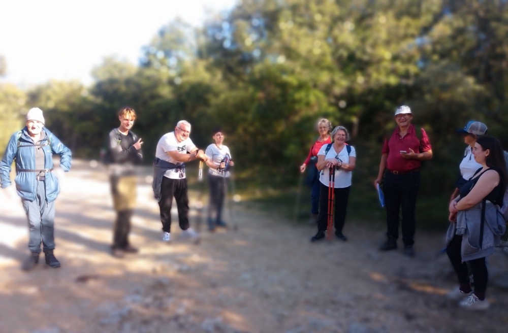 Grand soleil pour nous 10 randonneurs, dont trois sans entraînement. Nous partons pour 7 kilomètres et 47 mètres de denivelée et au total une sortie de 2h34.