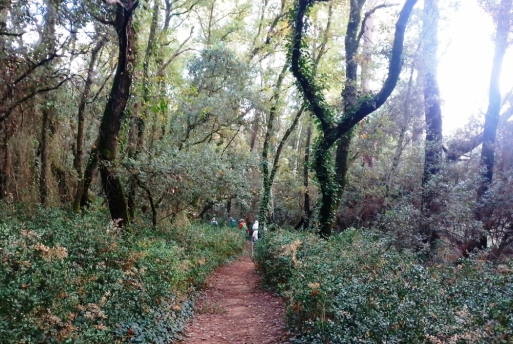 La piste commence à descendre et nous la quittons pour un petit sentier à gauche bien caché dans les arbres.
