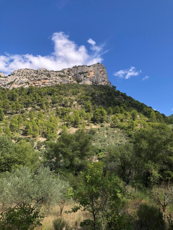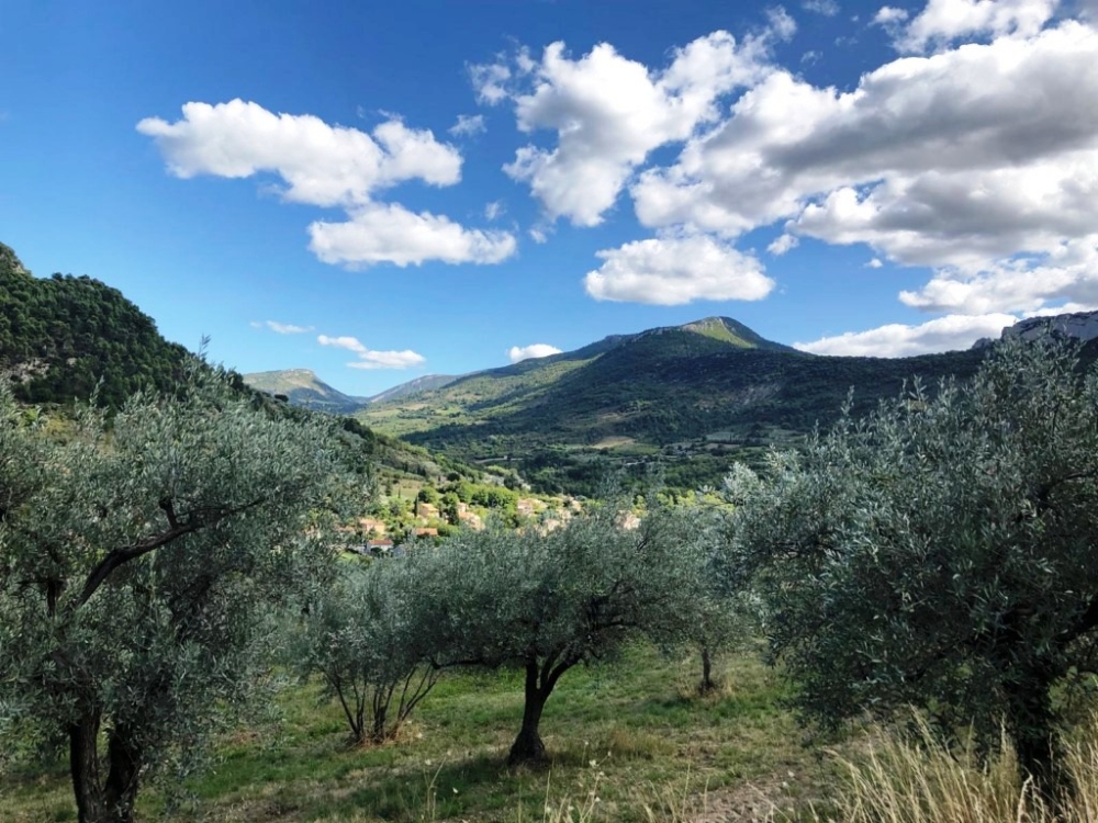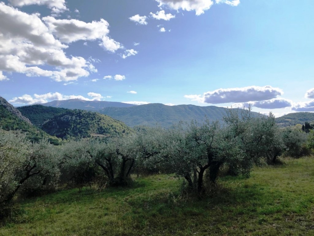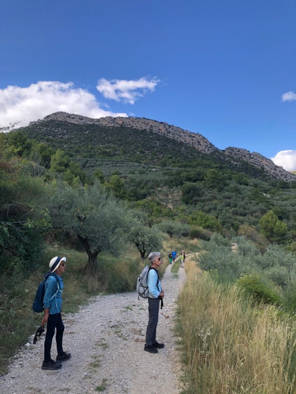 La route, est bordée d’oliviers, portant des fruits de très belle taille, probablement annonciateurs d’une belle récolte.